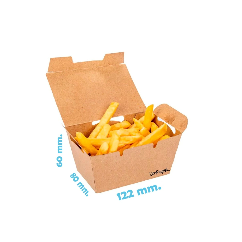 Descubre la cajita de cartulina kraft, diseñada especialmente para tus delicias favoritas como nuggets o papas fritas. Compacta y práctica, mide 122mm de largo, 80mm de ancho y 60mm de alto. Ideal para restaurantes y eventos, esta caja garantiza una presentación impecable y un manejo sencillo. Apuesta por la calidad y sorprende a tus clientes o invitados con una presentación única.